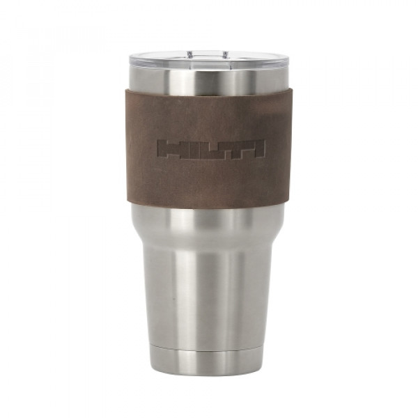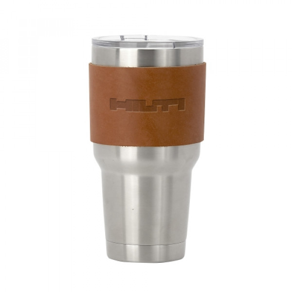 Huntsman debossed leather sleeve for 30 oz. stainless steel tumbler (stainless steel tumbler not included). Choose from 6 domestic, USA Made, leather colors and customize to match your company logo to create something truly unique. Colors and distress marks will vary
