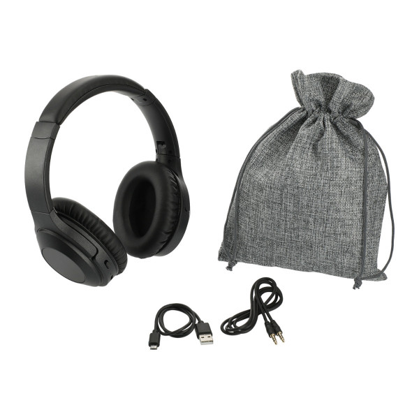 Immerse yourself in premium sound with the Hush Active Noise Cancellation Bluetooth Headphones. Enjoy up to 15 hours of playtime at max volume, or 10 hours with ANC on, which blocks out 20-23dB of sound for a disruption-free experience. Perfect for flights, commutes, or office days, these headphones feature memory foam earpads, built-in controls, and a mic for easy calls. With a collapsible design, they’re portable in the included woven pouch. Includes 20” Aux cable, Micro USB charger, and Bluetooth 5.0 with a 33-foot range. Charging time: 2 hours.