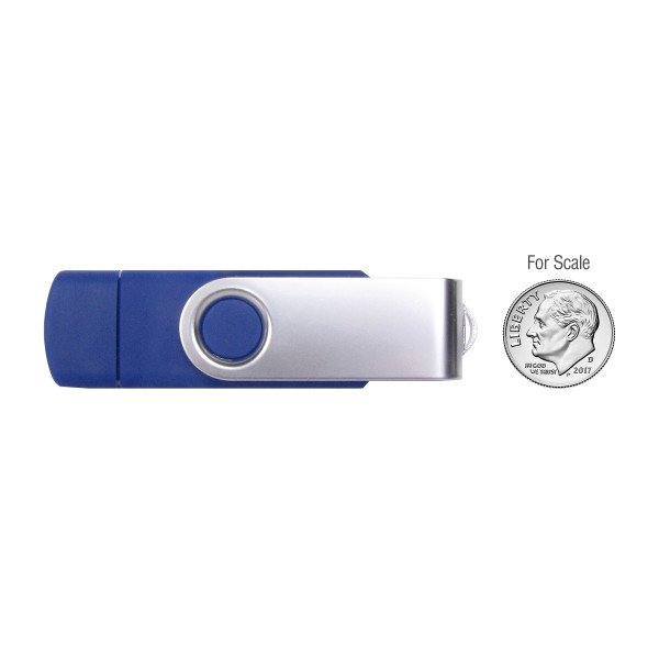 This compact and versatile USB flash drive is designed for convenience and portability. Featuring a sleek, swivel design, it easily attaches to keychains, lanyards, or bags for quick access to your important files. With added bonus of a micro USB port on the other end and multiple color options and customization capabilities, it’s a practical and stylish storage solution for everyday use.