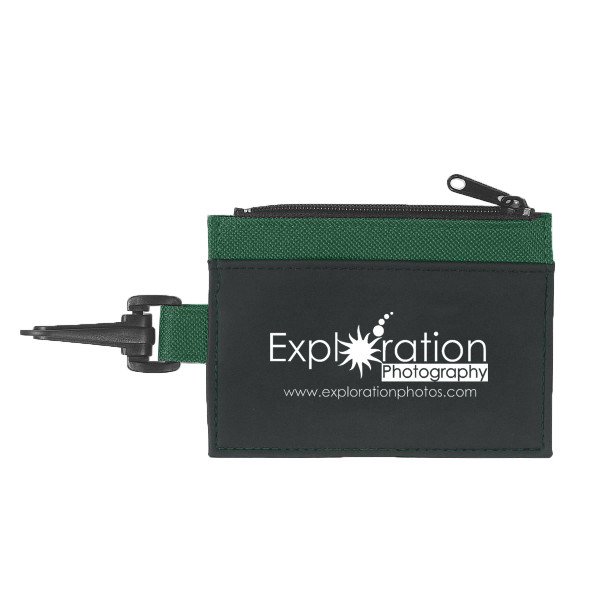 Keep all your important documents handy when traveling with this ID Holder. It features a zippered compartment with split ring and a clip for easy attatchment.::Pocket On Backside