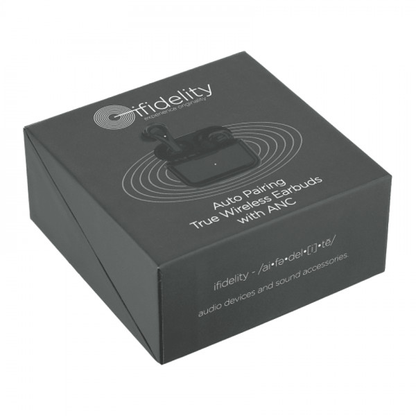 The ifidelity Auto Pair True Wireless Earbuds with ANC combine all the features you would expect from premium True Wireless Earbuds. Built-in sensors on the earbuds determine when the earbuds are in use, pausing the music when you remove the buds from your ears and resuming the music when you put them back in. The earbuds feature transparency mode, which makes it easier to hear surrounding sounds while the earbuds are in use. To block out the surrounding sounds, change the mode to Active Noise Cancellation. With over 5hrs of playback at max volume, you won’t need to charge the earbuds often! When not in use, place the earbuds back into the case to charge them up. The case will charge the earbuds four times from 0% to 100%. It only takes one hour and fifteen minutes to charge the earbuds and two and a half hours to charge the case. A 19.5” USB-A-to-Type-C charging cable and small, medium, and large silicone ear tips are included.