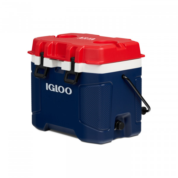 - Molded-in cup holders in two sizes on the lid