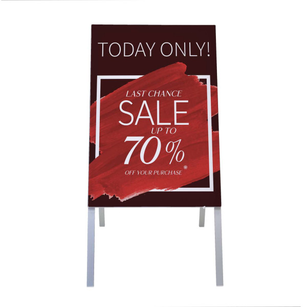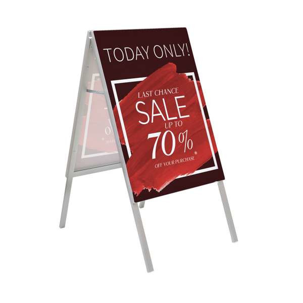 - A-frame includes two easy-to-install single-sided graphic panels to create a two-sided display