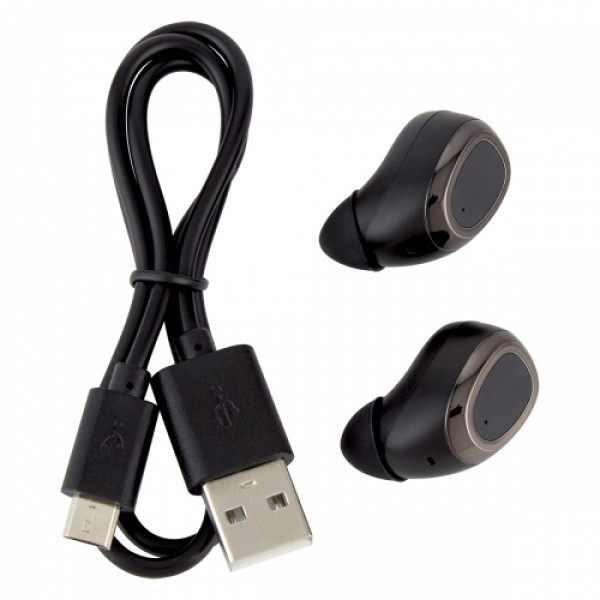 ::Features Bluetooth® 4.2 Wireless Technology And Built-In Microphone With Volume Control::Charge Speaker Storage Cradle With Micro USB, Unplug To Charge Wireless Earbuds::Simply Pair With Your Device To Enjoy Dynamic Stereo Sound Or Receive Hands-Free CallsHands-Free Design::Press +/- Buttons To Advance Through Selections And Hold Down To Change Volume::Works With Most Audio Devices::Pairs From Up To 30 Feet Away::40 mAh Battery (Charging Cord Included)::Up To 2 ½ Hours Of Play Time, Up To 1 ½ Hours of Talk Time::The Bluetooth® word mark and logos are registered trademarks owned by the bluetooth SIG, Inc. and any use of such marks by Hit Promotional Products, Inc. is under license. Other trademarks and trade names are those of their respective owners.