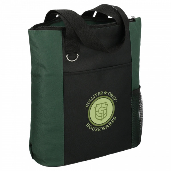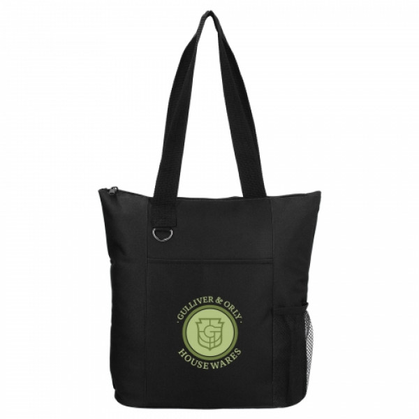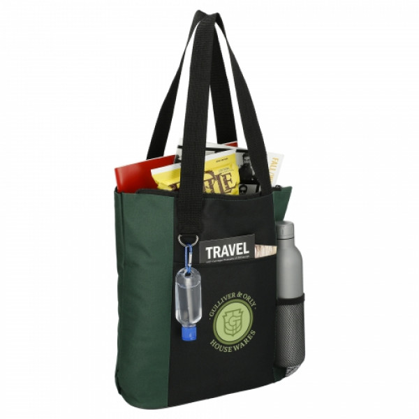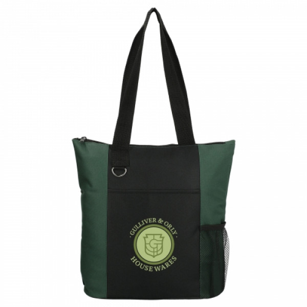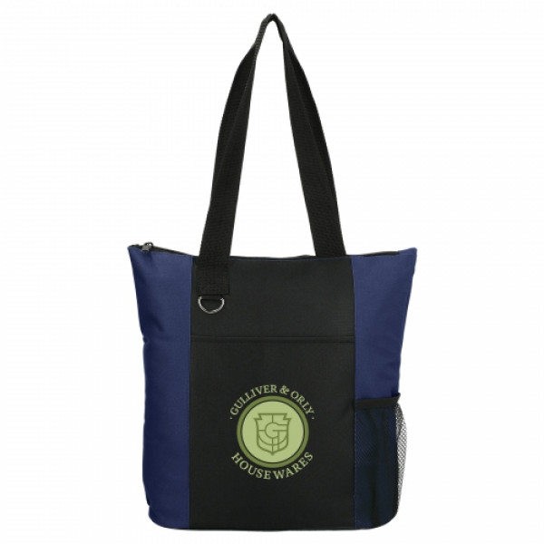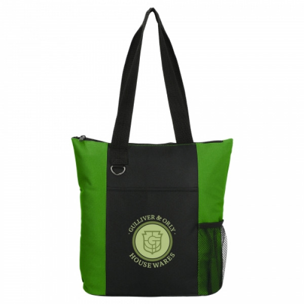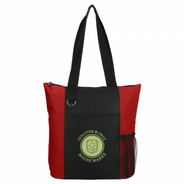 The Infinity Convention Tote has a zippered main compartment with double 27 inch reinforced webbing handles. ::It additionally features an open front pocket, key ring and a side mesh pocket.
