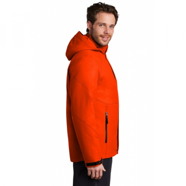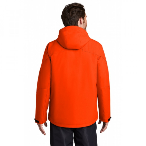 This insulated tech jacket serves as a reliable defense against cold and wet weather conditions, offering 10K/10K weather protection. Its fabric is critically seam-sealed to ensure waterproofing and breathability, effectively repelling moisture with a durable water-repellent (DWR) finish. The jacket is crafted from 100% polyester canvas with a TPU laminate and DWR finish on the exterior, while the interior and fill consist of 100% polyester. The body is filled with 5.3 ounces of polyfill, while the hood and sleeves contain 3.5 ounces of polyfill. It boasts a 10,000MM fabric waterproof rating and a 10,000G/M2 fabric breathability rating. Additional features include an attached, adjustable hood with a locking drawcord, a full-length exterior storm flap, interior zippered chest pocket, waterproof zippered front pockets, adjustable rubber tab cuffs, an open hem with a locking drawcord for adjustability, and a Port Pocket™ for easy embroidery access.