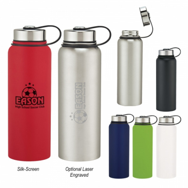 ::Stainless Steel Outer And Inner::Powder Coated Finish On Colors, Smooth Finish On Silver and Matte Black::Double Wall Construction For Insulation Of Hot Or Cold Liquids::Vacuum Insulated::Self-Attached, Screw On, Spill-Resistant Lid::Wide Mouth Opening::Easy Carry Handle::Meets FDA Requirements::BPA Free::Hand Wash Recommended