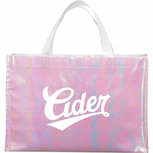 The Iridescent Non-Woven Shopper Tote makes a trendy shopping companion. This tote features an open main compartment.
