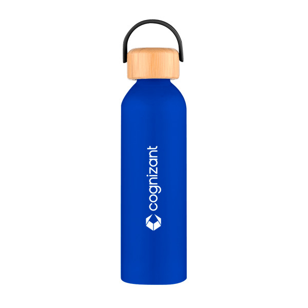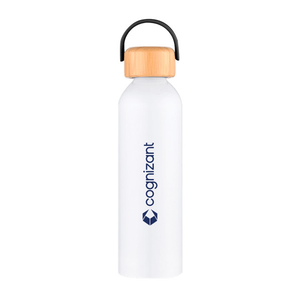 Stay refreshed while making an eco-conscious choice with this 24 oz bottle made from recycled aluminum. Designed for everyday use, it features a sleek single-wall construction that keeps it lightweight yet durable. The natural bamboo lid with a built-in handle adds a touch of style and functionality, making it easy to carry anywhere. Perfect as a promotional item, this bottle can be custom branded to showcase your company’s commitment to sustainability and modern design.