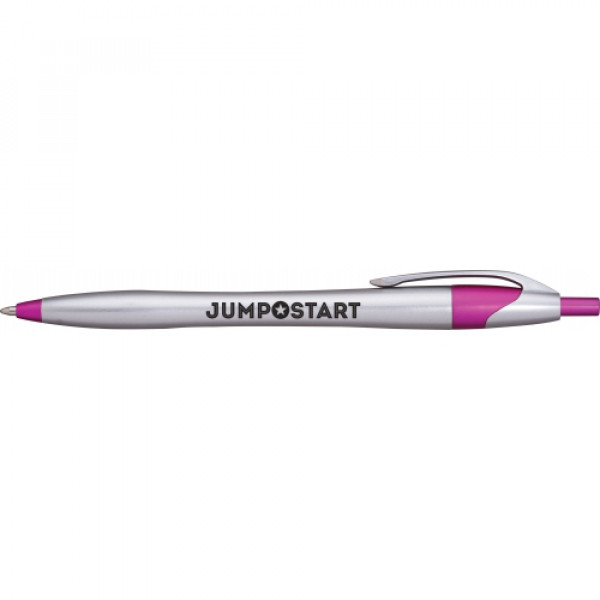 Stand out with the brightest version of a customer favorite — this pen features vivid neon trim that pops against a sleek platinum silver barrel. It's designed to draw attention to your brand, making it a perfect choice for a custom branded promotional product.