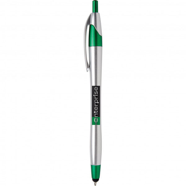 Elevate your brand with a modern multifunction twist using the Javalina™ Chrome Stylus Pen. This upgraded favorite features a brushed silver barrel paired with jewel-tone metallic trim and a stylus tip that’s perfect for navigating touchscreens with ease. Ideal as a custom branded promotional product, it delivers dependable performance with a guaranteed ultrasmooth writing experience.
