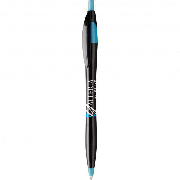 Glossy black barrels framed by neon brights make your imprint pop, making this an ideal promotional product for showcasing your brand. With a guaranteed ultra-smooth writing experience and durable construction, this pen is a standout favorite for giveaways, events, or daily use. Available with black or blue ink (blue ink is the default).