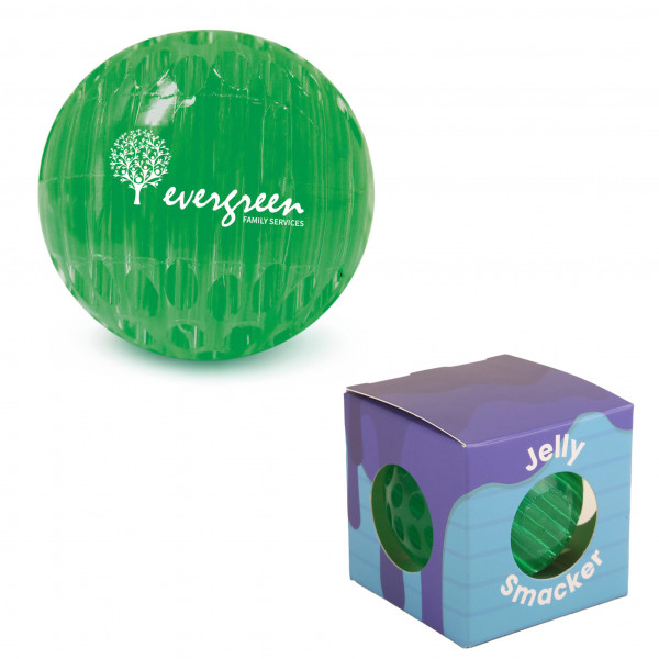 The Jelly Smacker is a vibrant, translucent stress ball that adds a playful twist to stress relief. When squeezed, it emits a distinctive "smacking" sound, providing both tactile and auditory stimulation. Crafted from durable, non-toxic rubber, this engaging tool ensures endless fun and serves as a unique way to promote your brand.
