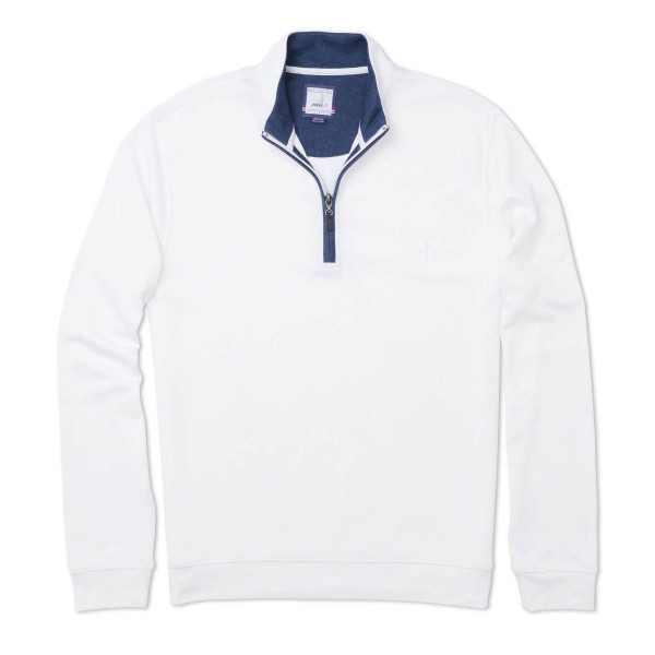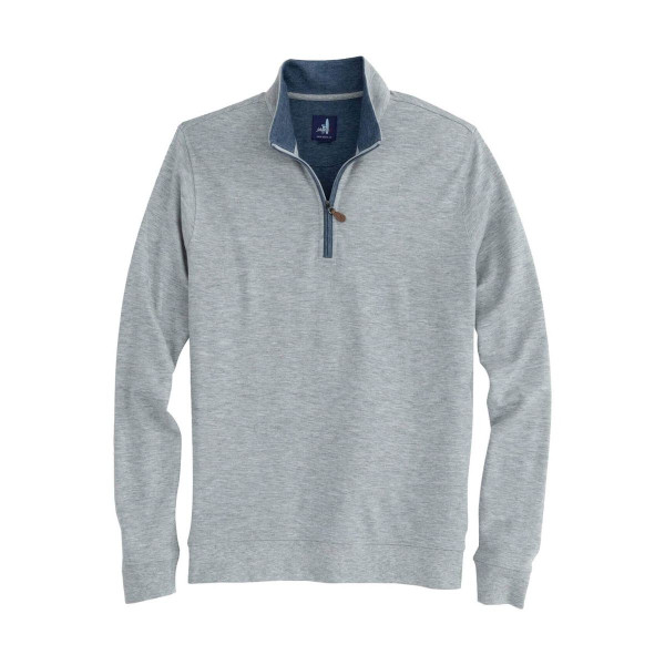The Johnnie-O Men's Sully Quarter-Zip Pullover seamlessly combines comfort and sophistication, making it a versatile addition to any wardrobe. Crafted from a soft blend of cotton, lyocell, and polyester, this pullover offers a relaxed feel akin to your favorite sweatshirt, while its refined design ensures you look polished for any occasion. The heathered double-knit fabric provides a subtle texture, and thoughtful details like the contrast inside collar and signature leather zipper pull add a touch of elegance. Whether layered over a polo for a day on the golf course or paired with a button-down for a casual evening out, the Sully Quarter-Zip is designed to keep you comfortable and stylish.