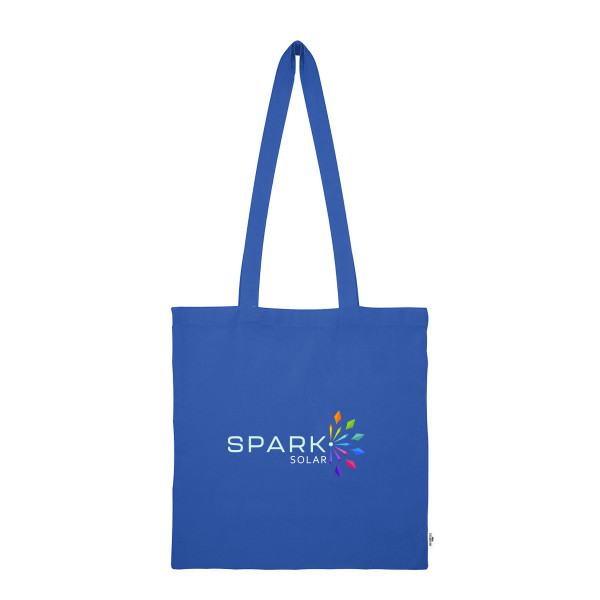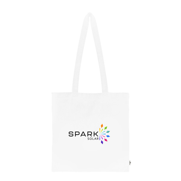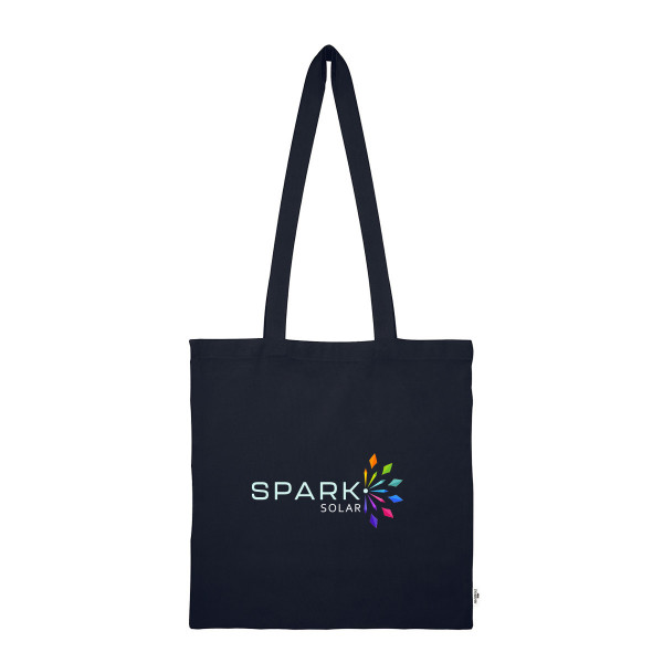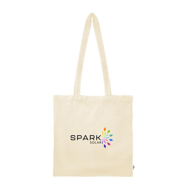 The Jones Recycled Cotton Tote Bag is an eco-friendly and practical choice for everyday use. Crafted from 4 oz. recycled 100% natural cotton (140 GSM), this tote combines sustainability with functionality. This tote bag offers a sustainable solution for carrying essentials, making it ideal for shopping, work, or daily errands.