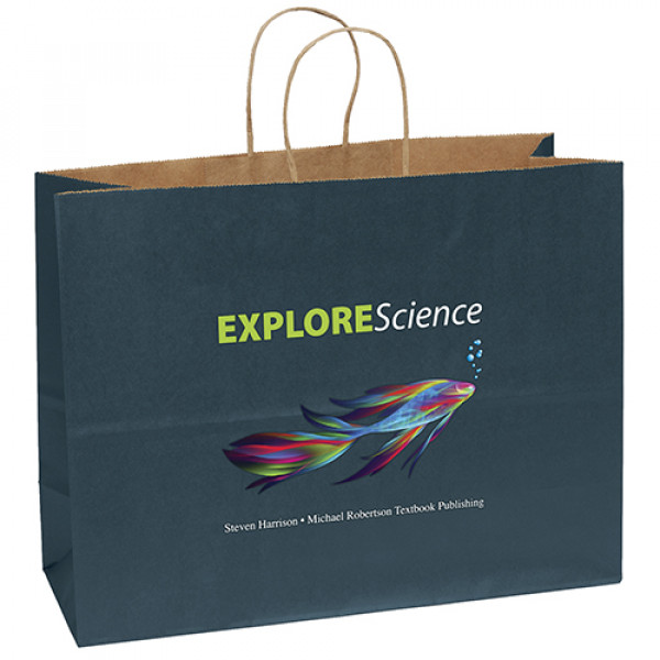 "::Matte paper shopper with serrated cut top\n::Twisted kraft paper handles\n::Available in 9 different colors"