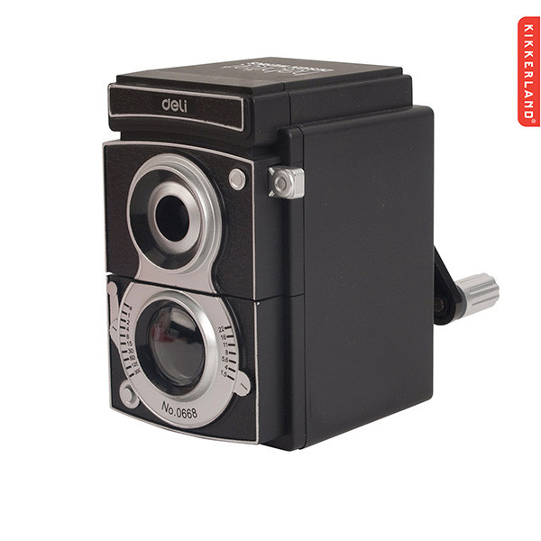 Add some retro charm to your desk with the Kikkerland Camera Pencil Sharpener. Styled like a vintage twin-lens reflex camera, this functional sharpener adds personality to any workspace while keeping your pencils perfectly pointed. It's a fun and quirky accessory for artists, students, or photography lovers.
