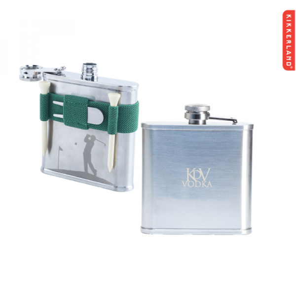 - Includes a stainless steel flask with compact golf tools