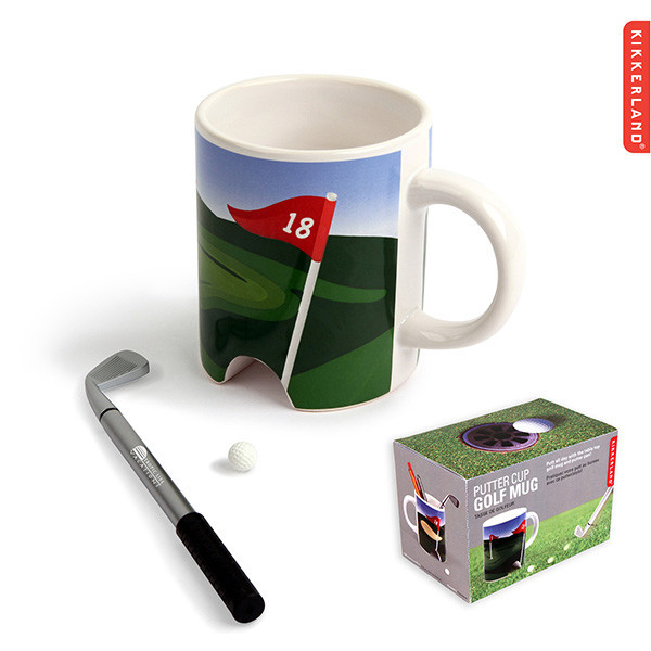 The Kikkerland Putter Cup Golf Mug is a playful and practical gift for golf lovers. This ceramic mug features a putting green design at the base, complete with a mini putter pen and golf ball, turning your coffee break into a mini game. It's both a fun desktop distraction and a fully functional mug.