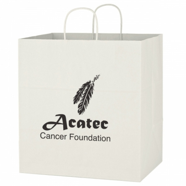 ::Made Of Kraft Paper::Serrated Top::10" Gusset::Reusable::Recyclable::Matching Kraft Twisted-Paper Handles::Made In The USA