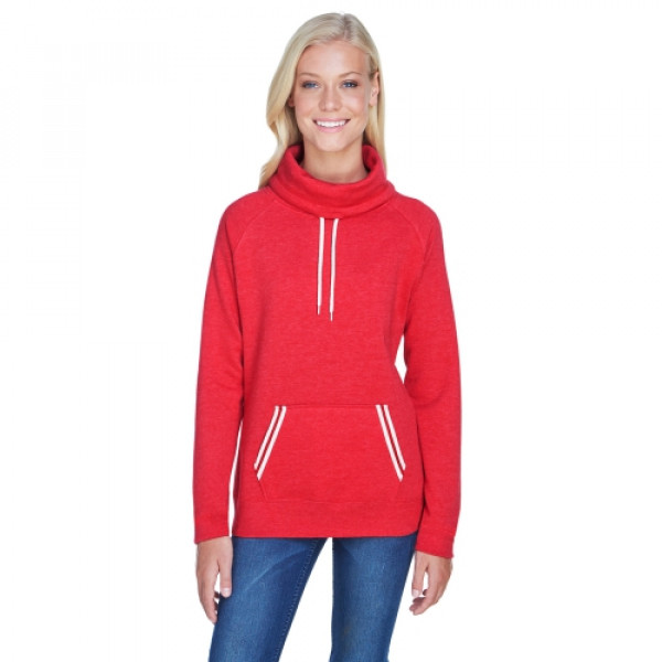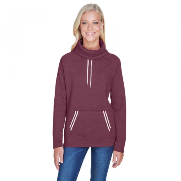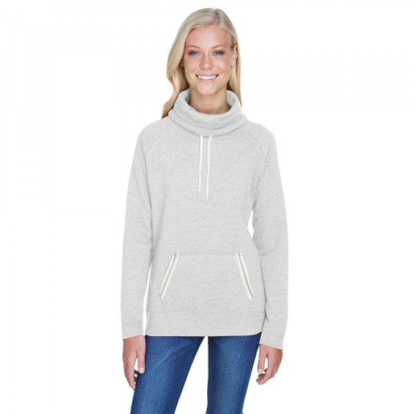 Fabric:::6.5 oz., 60% cotton, 40% polyester singledyed sueded fleeceFeatures:::1x1 yarndyed stripe pocket trim::Self fabric cowl neck with off-white drawcords