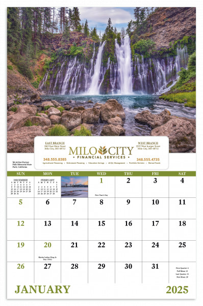America's scenic beauty leaps off the pages of this 13-month calendar.