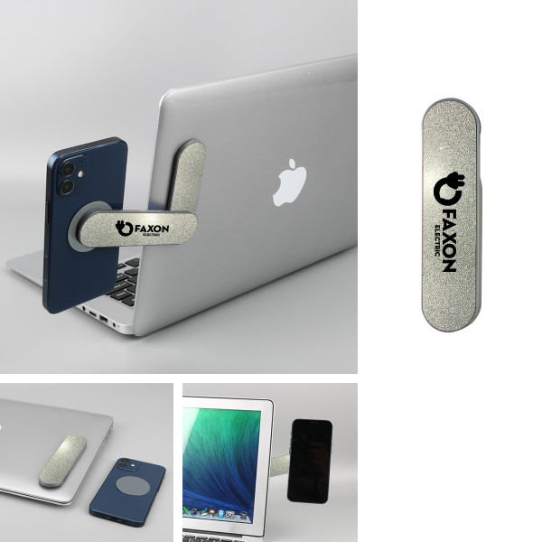 Introducing our custom promotional Laptop Swivel Phone Mount - the must-have accessory for all laptop users! With its strong adhesive, this mount easily adheres to the back of your laptop, keeping your phone within reach at all times. The magnetic pad ensures that your phone stays securely in place, even when you're on the go. And when you're not using it, simply swivel it closed for a clutter-free workspace. Stay connected and productive with our Laptop Swivel Phone Mount!