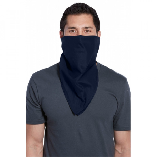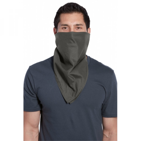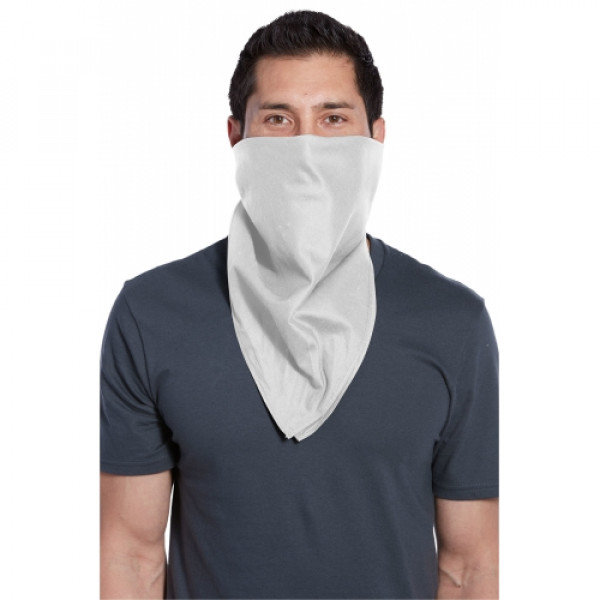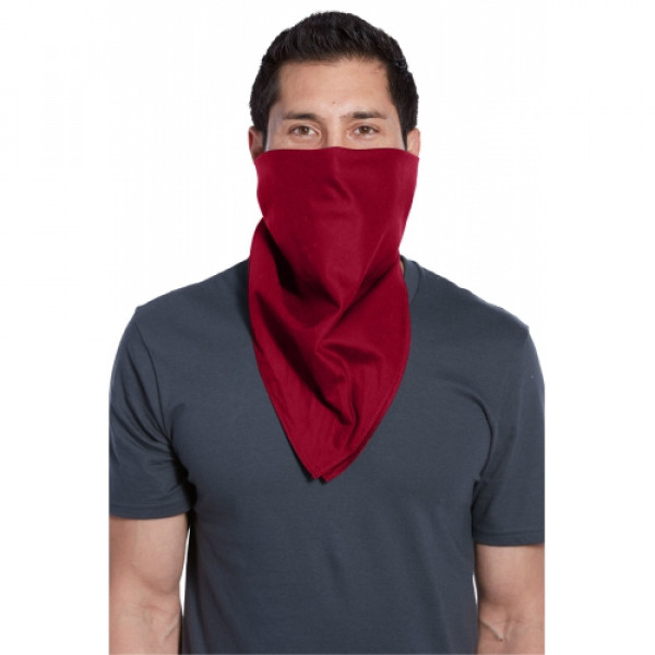 Sized larger than an average bandana, this durable bandana offers more face covering and decoration space. Versatile and multifunctional, it can also serve as a headband or neckerchief. Fold bandana diagonally and tie around head to cover face as desired.::80/20 poly/cotton sheeting::Finished seams prevent fraying::Measures: 23" x 23"::Machine washable