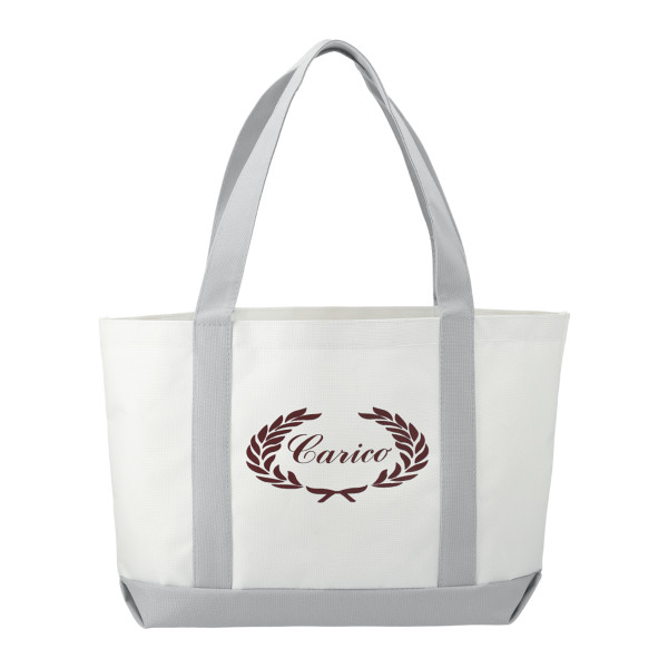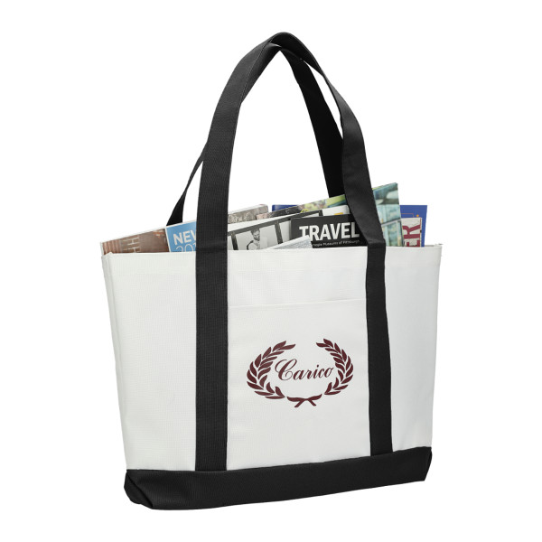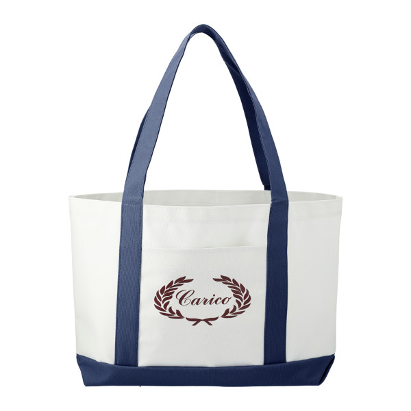 The Large Canvas Tote Bag combines durability with a nautical-inspired style, making it a practical and eye-catching companion for everyday errands, beach days, or promotional events. Crafted from sturdy PolyCanvas, this tote offers a roomy main compartment for your essentials and an open front pocket for added storage. With strong 23" handles, it's easy to carry by hand or over the shoulder, making it perfect for life on the go.