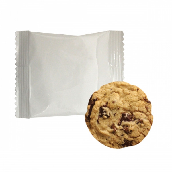 ::This custom and indivually wrapped chocolate chip cookie is a great giveaway for any occasion.::Each chocolate chip cookie comes individually wrapped in a four color process wrapper with full coverage.::There are endless possibilities for these individually wrapped chocolate chip cookie promo pack snack bag treats.::Please call for other available filling options for these individual snack pack promo bag treats.::Great chocolate chip cookie value.