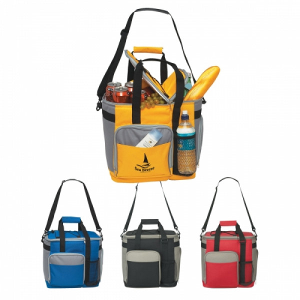 ::2 Separate Insulated Compartments::Holds 24 Cans::Bungee Cord Storage On Top::Detachable/Adjustable Padded Shoulder Strap::Front Outside Zippered Pocket::Removable Liner For Easy Cleaning