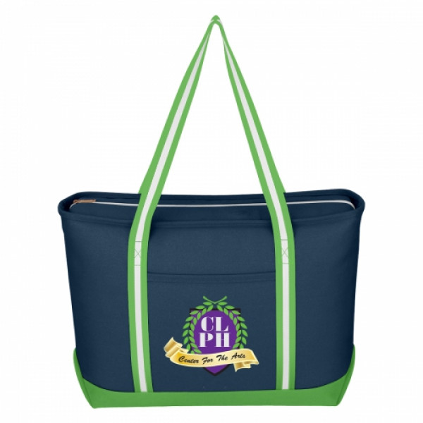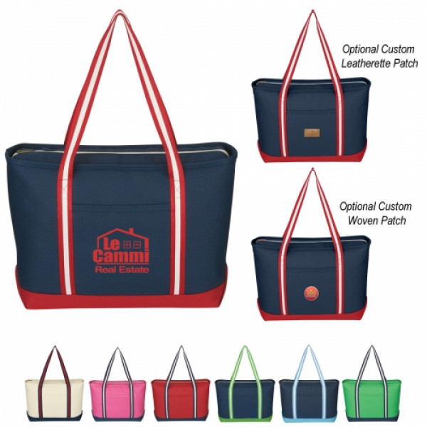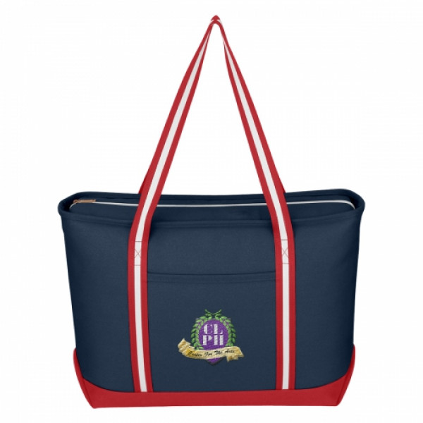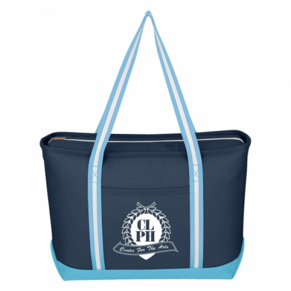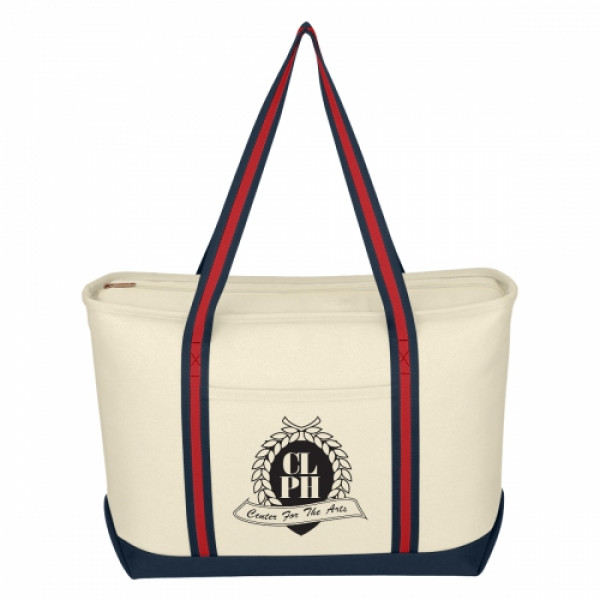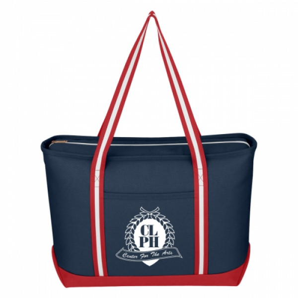 ::Made Of 24 Oz. Cotton Canvas::Front Pocket::Top Zippered Closure::26" Handles::Spot Clean/Air Dry