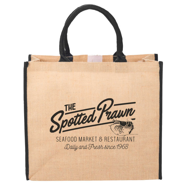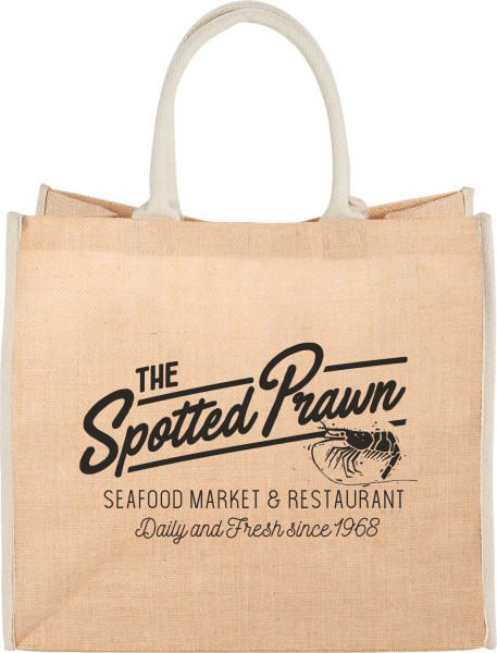 The Large Jute Tote is a stylish and eco-friendly bag ideal for carrying everything from daily essentials to event giveaways. Made from natural jute, it features a roomy open main compartment and sturdy 17" handles for easy over-the-shoulder carrying. With a wide surface for decoration, this tote makes an excellent custom-branded promotional product for trade shows, corporate events, and retail programs.
