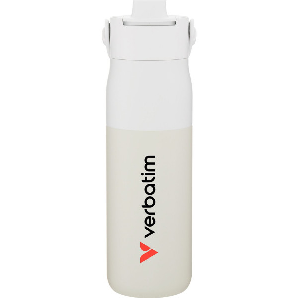 Experience innovation and cleanliness with the 23 oz smart bottle designed for modern, on-the-go hydration. Constructed from premium electropolished 18/8 stainless steel, it features double-wall vacuum insulation to keep drinks cold and refreshing. The advanced PureVis™ UV-C LED technology and Nano Zero filtration system work together to neutralize bacteria and enhance water quality. With a threaded lid, swig top cap, inner straw with silicone holder, and a soft removable carry handle, this bottle is as functional as it is stylish. An excellent high-end promotional product, it can be custom branded for impactful gifting.