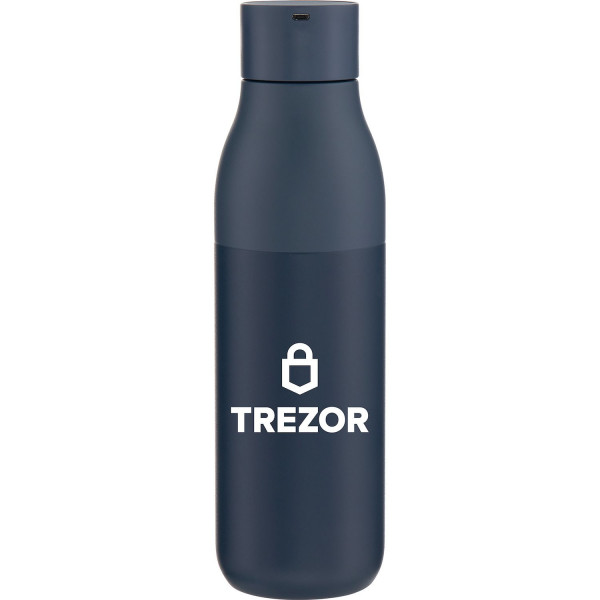 Stay refreshed with the 25 oz self-cleaning bottle that brings cutting-edge technology and elegant design into one stylish package. Made from premium double-wall electropolished stainless steel with vacuum insulation, it keeps your drinks cold for extended periods. The threaded lid features integrated 280nm PureVis™ UV-C LED technology that helps keep both your water and bottle clean. Its powder-coated finish adds durability and sophistication. Ideal as a premium promotional product, it can be custom branded for a sleek, functional gift.