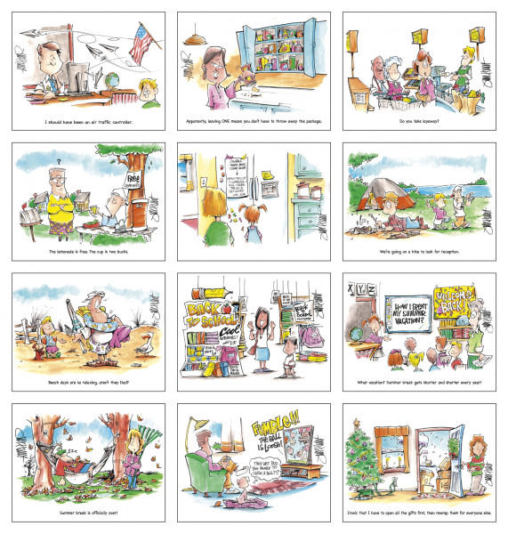 Add comedy to your life by taking advantage of this humorous calendar to look at the joys of family life with new art by Jim Hunt.