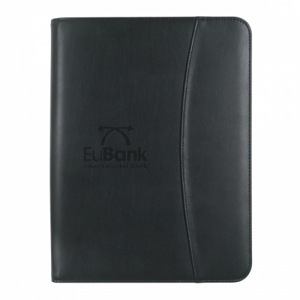 ::Includes 30 Page Lined 8 ½" x 11" Writing Pad::Card Holders, Elastic Pen Loop, Mesh ID Holder And Calculator::3 Interior Pockets: One With A Zipper And One Is Expandable::Outside Zipper For Security::Semi Polyurethane Leather Cover
