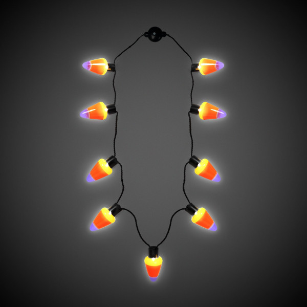 Light up your Halloween or Fall Harvest celebrations with this fun LED Candy Corn Necklace. Featuring nine candy corn charms in festive orange, yellow, and white, this glowing accessory adds a playful touch to seasonal events. As a promotional product, it can be custom decorated or branded, making it a memorable giveaway or party favor.