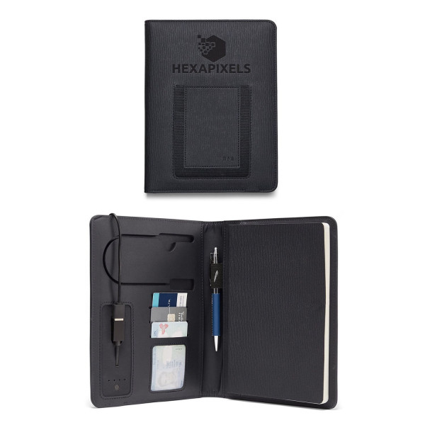 Combine practicality with tech-savvy style with the Leeman Roma 6"x8" Wireless Power Charger Refillable Journal. This promotional product can be custom branded or decorated, making it ideal for corporate gifts or giveaways. It features a wireless charging pocket, built-in power bank, and a refillable journal, offering a seamless blend of functionality and personalization.
