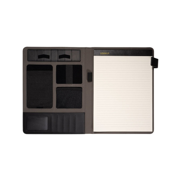 Stay organized and polished with this sleek tech padfolio, crafted from soft faux leather Italian PU for a professional look and feel. Designed for modern convenience, it keeps your essentials neatly in place while offering a built-in phone stand for hands-free viewing. Perfect as a customizable promotional product, this padfolio can be branded to showcase your business while providing everyday functionality.