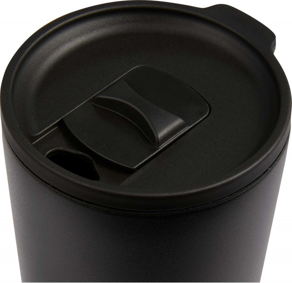 - Screw-on lid with thumb-slide opening for easy sipping