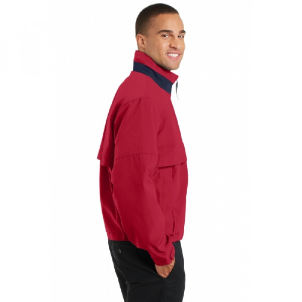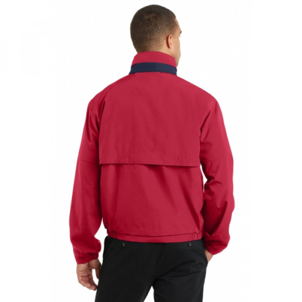 ::The Legacy™ is our professional pick for corporate casual retreats and events. This traditional style is updated with features like a stowaway hood design and contrast collar trim.::100% polyester shell::100% polyester mesh upper-body lining, 100% polyester lower-body, front and sleeve lining::Stowaway hood in cadet collar::Locker loop::Interior chest pocket with hook and loop closure::Front and back vents for breathability and easy embroidery::Front zippered pockets::Elastic cuffs with tabs for adjustability::Open hem with elastic insets