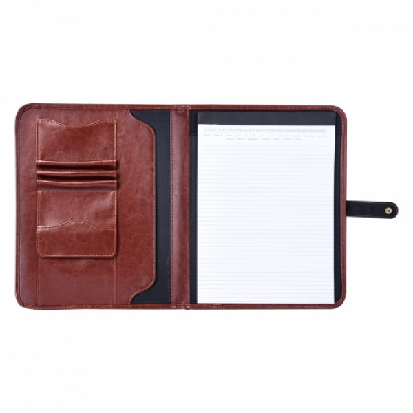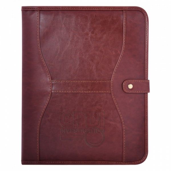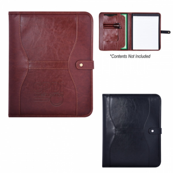 ::Includes 30 Page Lined 8 ½" x 11" Writing Pad::Interior Card Holder, 3 Pen Loops, Pocket With Snap Closure And Document Pocket::Snap Closure::Polyurethane Cover