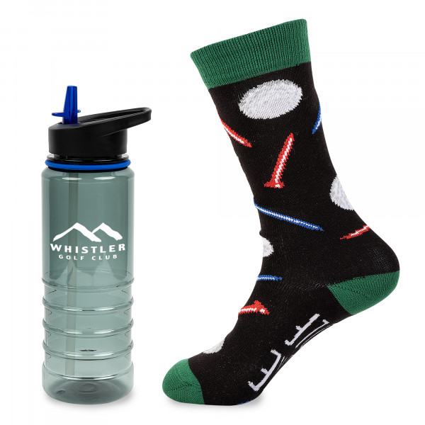 This sporty gift set is a fun and functional promotional product that can be custom, decorated, or branded for golf outings, tournaments, employee rewards, and corporate events. Featuring a durable Tritan sports bottle and stylish golf-themed socks, it’s a perfect blend of practicality and personality for any golf enthusiast.