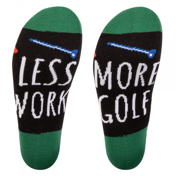 - Socks feature “Less Worry More Golf” design on the soles