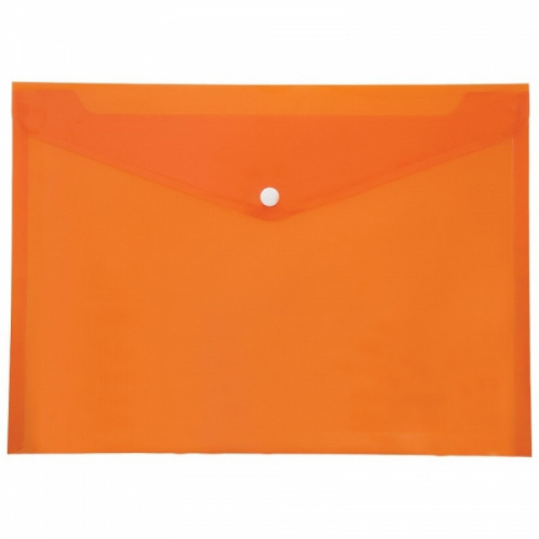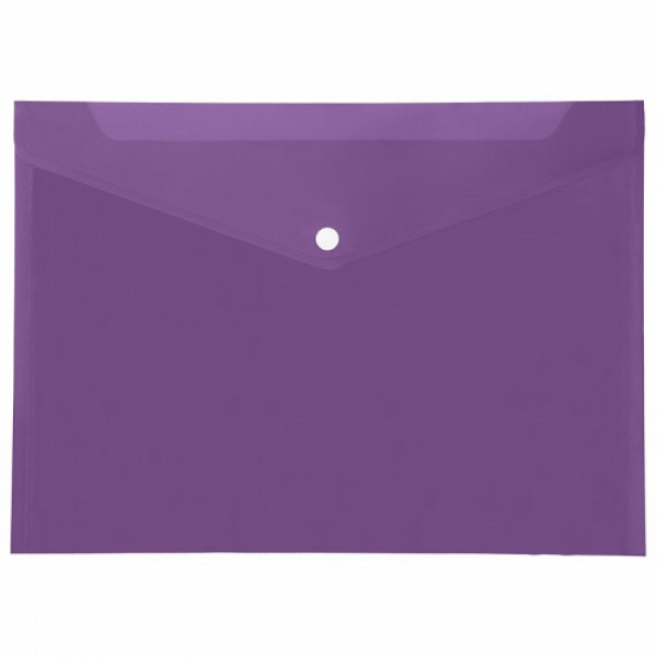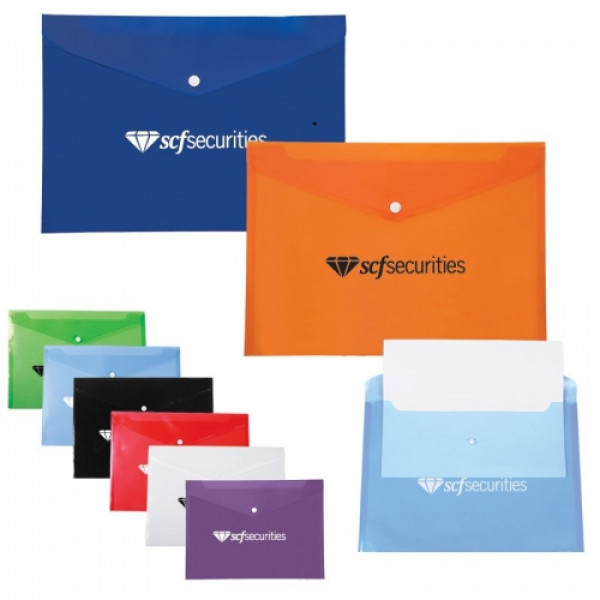 ::Letter-size poly snap-closure envelope gives you the storage space of a folder with the added feature of button flap closure to keep your papers from getting bent, spilled on or lost among other documents.::Made of 0.18 mm Polypropylene::Ideal case for homework, documents, notes, coupons or photos.::White plastic button snap closure seal.::Opens on long side.::Holds approx. 50-100 letter size sheets.::Available in a variety of solid and translucent colors.