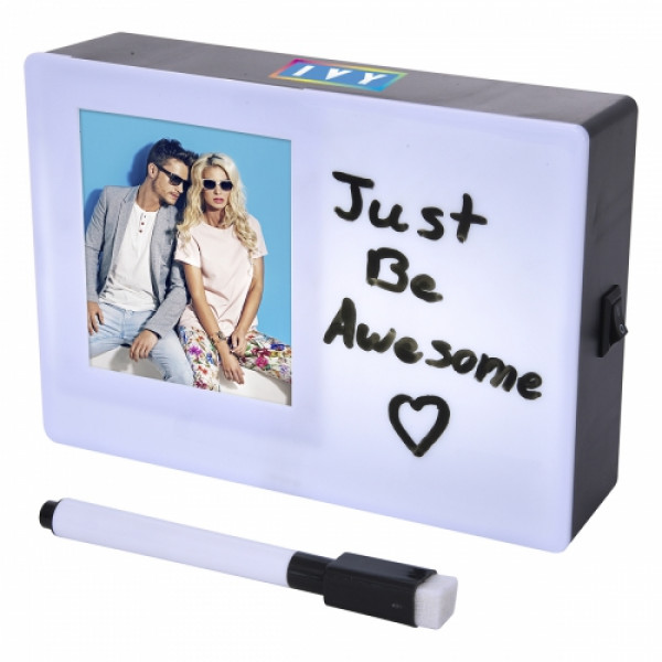::ABS Material::Push Switch To Turn On/Off::Includes Black Dry Erase Marker With Eraser On Cap::3" x 3" Photo Window::Perfect For Sharing Messages For Any Occasion::4 AAA Batteries Included