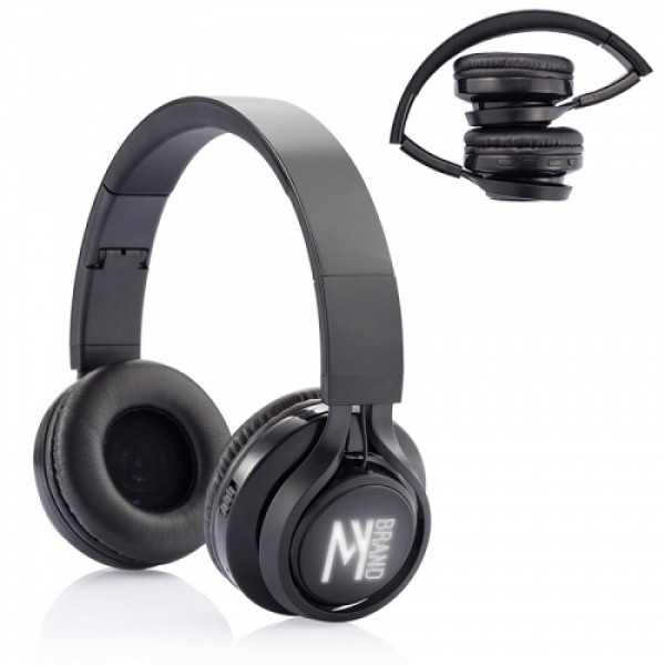 ::Wireless headphones made of ABS plastic and featuring light inside headset illuminates your logo during use.::Power/Technology: Rechargeable Lithium Polymer battery: 3.7V, Capacity 300 mAh; Input: 5V; Output: 0.25w; Frequency response: 20 HZ-20Khz; Transmission range: ≤10m (approx. 30 ft); Bluetooth® 2.1::Device must be charged prior to first use. Charge time varies by device. Minimum charge time: 1.5 hrs.::Playback time: approx. 4 hours (depending on volume and usage)::Includes instructions and charging cable.::LED logo lights up white.::Features hands-free call answering.::Designed for use with most smartphones, MP3 players, tablets and computers: please test compatibility prior to purchase::Folded: 7"w x 4.25"h x 3.25"d; In use: 8"w x 8.25"h x 3.125"d::FCC approved