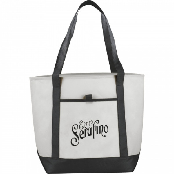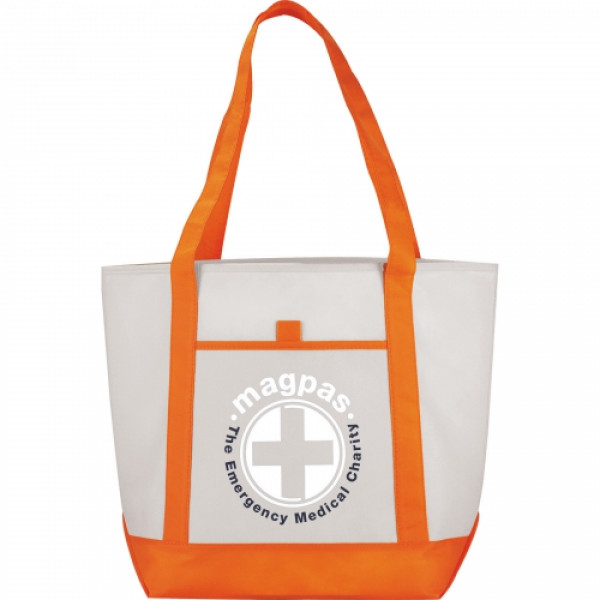 The Lighthouse Non-Woven Tote is a lightweight yet durable bag designed to handle everything from beach essentials to workday necessities. Made from tough 80G polypropylene, it features a spacious open main compartment and a handy front pocket with an integrated pen loop. The 24" handles offer comfortable over-the-shoulder carrying, while its reusable design promotes sustainability by reducing the need for single-use plastic bags.