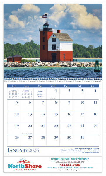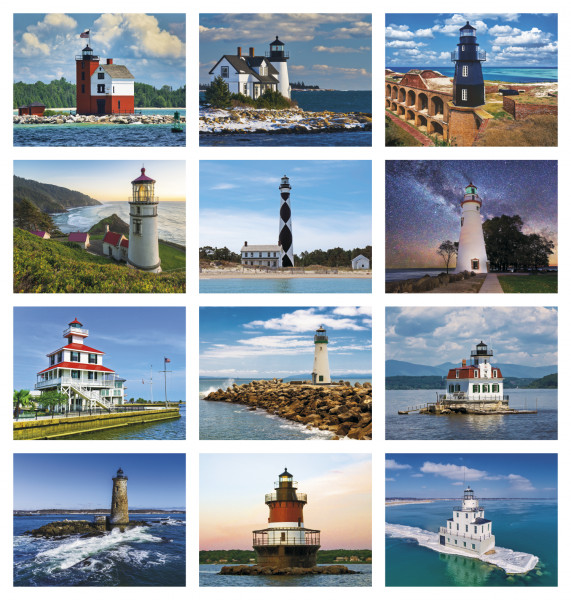 This calendar features lighthouses from rugged coasts and harbors around the United States.